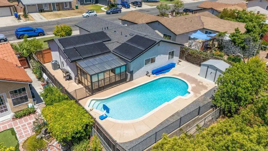 Welcome to this beautifully updated home in the heart of Mira Mesa. This bright and spacious residence features an open floor plan with modern finishes throughout, including a remodeled kitchen with quartz countertops and stainless steel appliances. Enjoy indoor-outdoor living with sliding doors leading to a newly added outdoor sunroom with a private pool perfect for relaxing or entertaining. All bedrooms include new flooring, and the primary suite has an added wardrobe. New central AC installed. PAID OFF 6.6?kW solar system with Tesla battery backup and a new roofboth installed in 2024offer energy efficiency and peace of mind with long-term warranties. Located on a quiet street just minutes from top-rated schools, parks, shopping, and dining, this home offers comfort, style, and convenience in one of San Diegos most desirable neighborhoods.