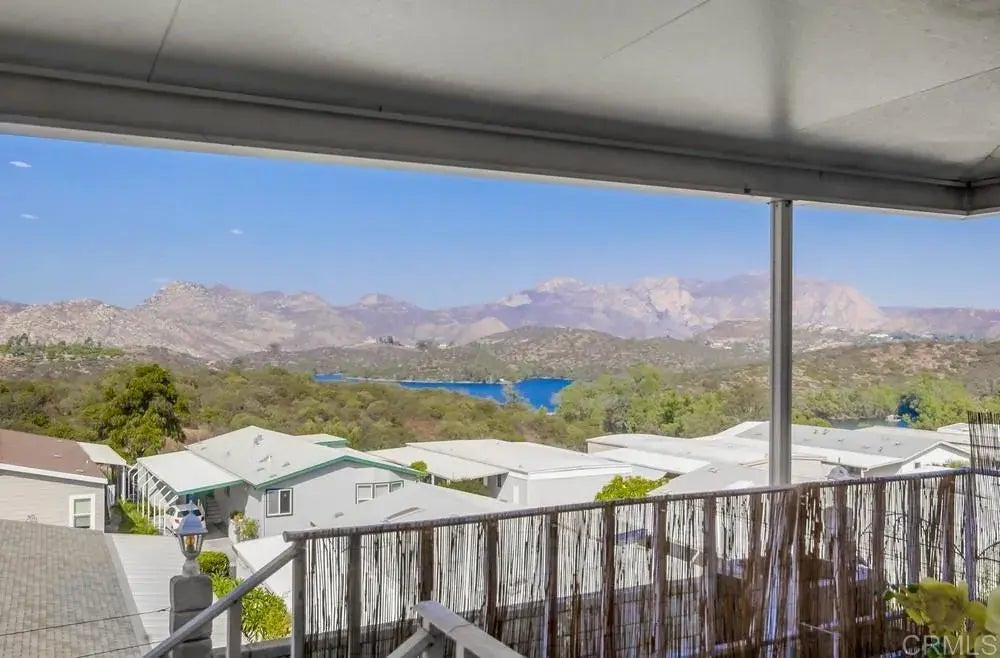 Enjoy breathtaking lake and mountain views from this beautifully maintained 2-bedroom, 2-bath home located in the highly desirable 55+ gated community of Lake Jennings Park Estates. Large picture windows fill the living room with natural light, complemented by custom window shades and a cozy corner pellet stove, perfect for cool evenings. The thoughtfully designed kitchen features an island with gas cooktop and bar seating, bright white cabinetry, and ample counter space, creating an inviting space for cooking and entertaining. A spacious family room opens through a sliding glass door to the covered front porch and expansive patio area, ideal for relaxing or hosting guests while taking in the views. The outdoor space offers privacy, mature landscaping, and a large storage shed that can double as a workshop or hobby area. Residents enjoy resort-style amenities including a clubhouse with full kitchen and fireplace, library, game room with pool and card tables, heated pool, spa, dog park, and RV parking. All for a low monthly HOA fee with no space rent! Conveniently located near shopping, dining, and freeway access, this home offers the perfect blend of comfort, community, and scenic beauty in one of Lakesides premier 55+ neighborhoods.