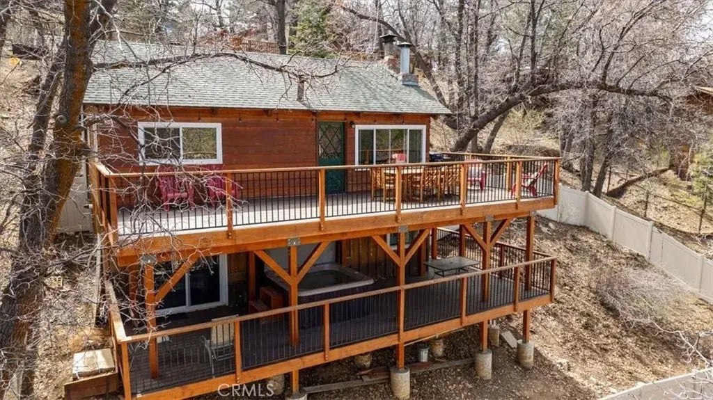 Escape to the mountains in this beautiful turnkey 3-bedroom, 2-bathroom Moonridge retreat, offering the perfect mix of charm and modern comfort. Tucked away for privacy on a large lot, and surrounded by soaring pines, this open-concept home features two impressive stone fireplaces, vaulted T&G ceilings, and a warm, inviting ambiance throughout. Enjoy year-round comfort with a mini-split system and forced air heating. The primary suite is located on the main floor, while the lower level includes two additional bedrooms, a bathroom, and laundry area - ideal for guests or a growing family. Step outside to enjoy two spacious decks, perfect for lounging or dining under the stars, and soak in the private hot tub after a day on the slopes or hiking trails. This home is currently operating as a successful vacation rental, offering built-in income potential and is just minutes from ski resorts, the Village, dining, grocery stores, and shopping. HOME IS BEING SOLD FULLY FURNISHED - SO YOU'LL BE READY TO GO!!! Whether you're looking for a peaceful second home, a full-time residence, or a turn-key rental investment, this Moonridge gem checks all the boxes!
