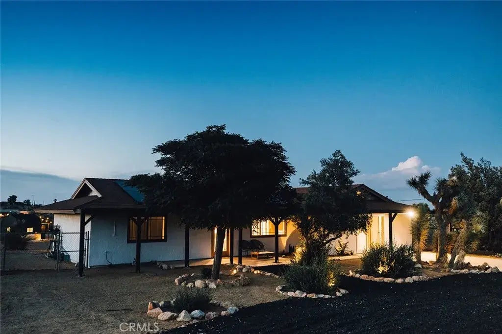 Welcome to 58250 Sierra Vista Dr. This beautiful home offers 3 bedrooms, 2 bathrooms, a living room, kitchen, dining space, and in-closet laundry all in 1,392 sqft. of living space. Step inside and discover a haven of modern amenities and stylish decor, creating a comfortable and inviting space. Indoors, the 3rd bedroom is being used as a game room, which beckons with its pool/ping pong table, and bar perfect for family fun or entertaining friends. Outside, this property also features two cabins, each offering endless possibilities from possible wellness retreats to quiet escapes. You'll find over two acres of desert landscape waiting to be explored, along with outdoor dining spaces, covered seating areas, and a back patio with a cozy fireplace feature. Take a dip in the cowboy plunges, relax in the hot tub, or simply unwind in one of the three hammocks as you gaze up at the star-filled sky. This property is equipped with smart TVs, a Keurig coffee machine, an outdoor griddle grill, central AC and heat, and a Tesla charger. Located just minutes from Joshua Tree National Park hiking trails and Pioneer Town, there's no shortage of activities to enjoy in the area. Whether you're exploring the local attractions or simply unplugging and soaking in the quiet desert atmosphere, this property offers the perfect place to call home.