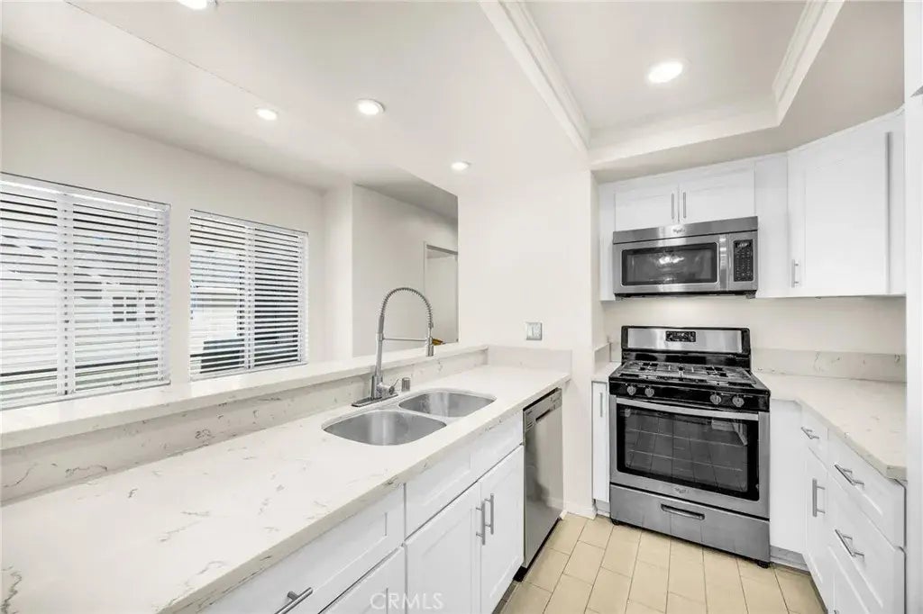 Location, Location! Nestled in a peaceful cul-de-sac in the tranquil canyons of Yorba Linda, this beautifully renovated corner-unit condo offers the perfect blend of privacy, comfort, and modern design. Surrounded by mature trees and natural beauty, this 2-bedroom, 2-bathroom home is a true retreat. Inside, the open-concept layout is enhanced by vaulted ceilings and an abundance of natural light, creating a bright, airy living space. Step onto your private balcony to enjoy your morning coffee or an evening breeze. Thoughtfully updated throughout, the home features laminate flooring, recessed lighting, fresh interior paint, ceiling fans, and a stylish kitchen with custom cabinetry, quartz countertops, and stainless steel appliances. The spacious primary suite includes a custom closet organizer, and a convenient indoor laundry closet with washer/dryer hookups adds everyday ease. Located in the quiet Yorba Linda Villages community, you'll enjoy resort-style amenities including a sparkling pool, spa, clubhouse, and playground. Outdoor enthusiasts will appreciate the nearby Santa Ana River Trail for walking and biking, while shopping and dining are just minutes away at Savi Ranch. Zoned within the award-winning Yorba Linda School District. This peaceful end-unit home is ideal for anyone seeking a tranquil lifestyle with easy access to nature and modern conveniences.