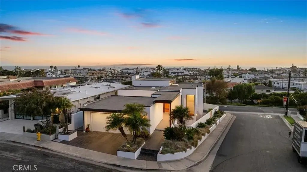 Located on one of the best streets in highly sought-after North Hermosa, this is the first time this incredible home has ever been on the market. This beautiful mid-century modern, custom built property is nestled on a rare cul de sac with west facing ocean views. It is immaculate and timeless, featuring soaring high ceilings complete with wood tongue & groove. This home was built ahead of its time, with a family friendly reverse floor plan that you would see in todays new construction homes and an open-concept layout that is bathed in natural light. The top floor maximizes the ocean views and the beach breeze and has a gorgeous and spacious living room, dining room, and a professional grade kitchen with a newer stainless SubZero, a center island, breakfast nook and custom made solid wood cabinetry. There is also a deck off the living space that is perfect for enjoying coffee or cocktails at any time of day. There is also an additional room on the upper level that is a perfect office retreat, additional family room or could be used as a bedroom. The downstairs level features 3 other spacious bedrooms including the private master suite, and an incredible light and bright recreation room that could be utilized as a study room, a playroom, art room or additional casual family room space. Just outside this downstairs living space is an incredible yard with plenty of space to relax, sun, and enjoy. There is also an oversized laundry room on this level and storage space. This home places you just blocks away from the beach, vibrant dining and outdoor recreation. It is perfectly c
