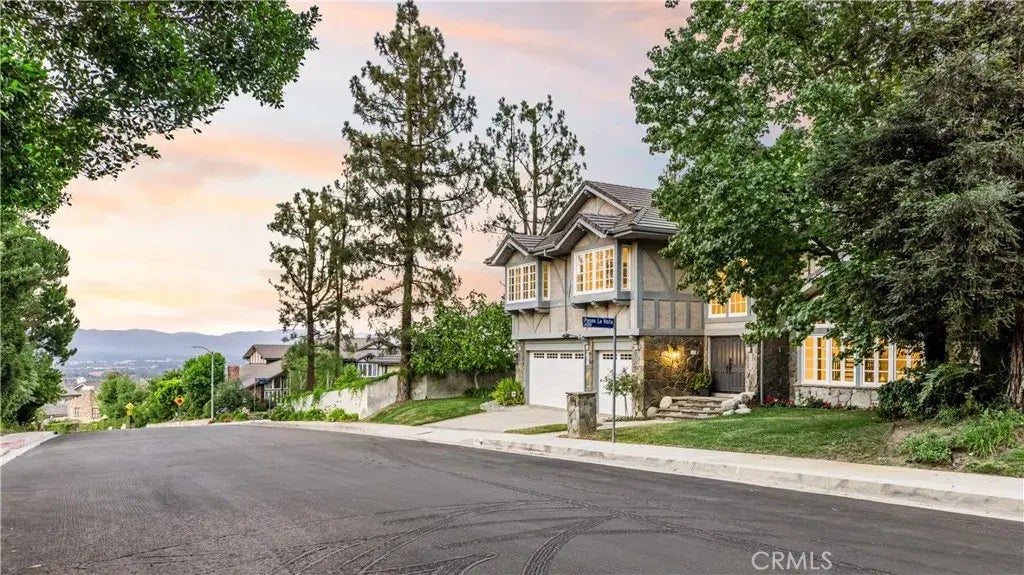 Perched high in one of Woodland Hills most sought-after neighborhoods, Valley Circle Estates, this stunning residence at 6032 County Oak Rd offers the perfect blend of luxury, comfort, and smart home convenience. From the moment you step inside, youre welcomed by grand scale soaring vaulted ceilings, a dramatic curved staircase leading up to 3 of the 4 bedrooms, and a grand foyer that sets the tone for the homes elegant yet functional layout. The thoughtful floor plan provides great flow between all main living spaces. One side leads to a main-level ensuite bedroom, perfect for guests or a home office, while the other opens to a spacious great room with a breathtaking wall of windows and French doors that fill the home with natural light. At the heart of the home is a TRUE chefs kitchen, ideally located between the formal dining room and family room. It features a double Thermador oven, Viking range and hood, huge Thermador refrigerator, walk-in pantry, a double-sided island with prep sink, and a breakfast nook that leads out onto the beautifully landscaped yard. Step outside and youll find an entertainers dream. A full-length patio stretches across the back of the home, with access from the dining room, kitchen, and family room. The brand new built-in BBQ with a direct gas line makes outdoor cooking easy, while the expansive covered seating area is perfect for hosting year-round. A smart heated pool with a waterfall, new hot tub, and expansive flat lawn framed by mature trees create a private backyard oasis. Upstairs, the oversized primary suite features partial valley vie