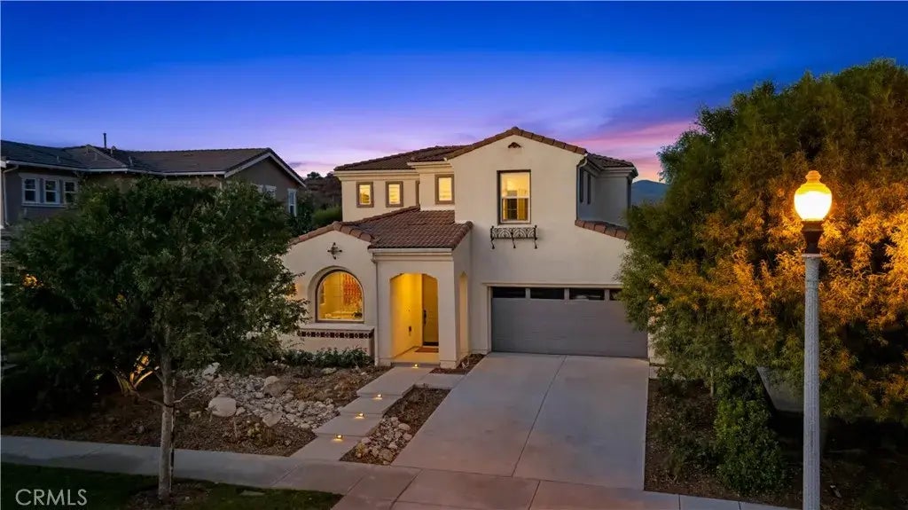 MAIN FLOOR PRIMARY SUITE, in Gated Valencia West Hills with, BREATHTAKING VIEWS. Welcome to your dream home: beautifully designed with sweeping valley and hillside views in one of Valencias most sought-after gated communities! This stunning property blends elegance, comfort, and functionality, with modern fininishes, tall doorways, and expansive windows offering plenty of natural light. The open-concept family room boasts a sleek modern fireplace with custom recessed wall features, and seamlessly flows into the living spaces on the main floor. The kitchen features a generous center island with seating, a built-in wine fridge, elegant granite countertops with mosaic tile backsplash, under-cabinet lighting, built-in range, double ovens, walk-in pantry, and stainless steel appliances. A formal dining room with custom European cabinetry provides the perfect setting for gatherings, with a full guest bath on the main level. The spacious main-floor primary suite is a true retreat, featuring an open layout, walk-in closet with custom built-ins, and direct backyard access where you can soak in the gorgeous views! The luxurious ensuite bathroom offers dual sinks, abundant counter space and storage, a soaking tub, separate shower, and a private water closet. Upstairs, a well appointed loft offers flexible living space, with two additional bedrooms featuring walk-in closets plus access to a full bath with dual vanities and a tub/shower combo. The backyard is a luxe low-maintenance entertainers paradise, thoughtfully landscaped with hardscape accents, a built-in fire pit, and plenty of