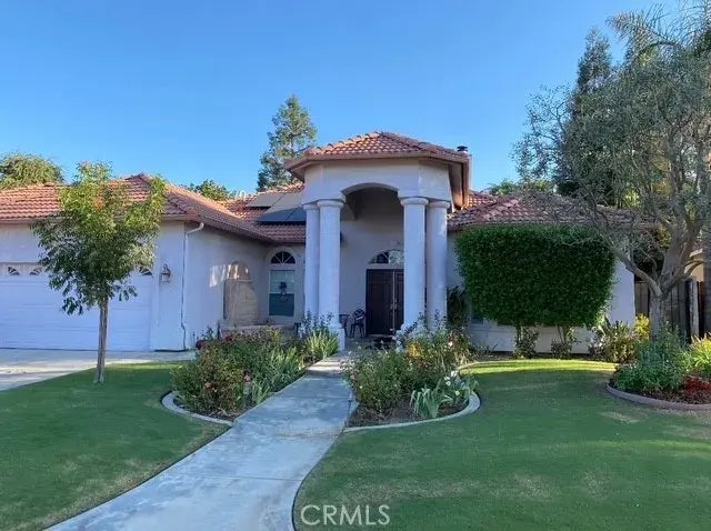 Spring Meadows West Side community. Stunning Northwest Bakersfield home is a 4-bedroom 2 bath home which has recently been painted in the kitchen and living room area. The kitchen features beautiful white cabinets with granite countertops. There is also a breakfast bar and a formal dining room. Most of the home features tile flooring with the exception of one bedroom. The AC unit is only 1 year old. The living room is open and cozy with recesses lighting, fireplace and direct access to backyard. The backyard is an oasis with a patio, sparkling pool, and a large area with grass. The home also features mature landscaping with an avocado, banana, citrus, orange, lemon and guayaba trees. This home also features RV access, leased and purchase solar panels, and a 3- car garage. In, addition, there is a shed for extra storage. This home school district has award winning schools. Hurry this home won't last.