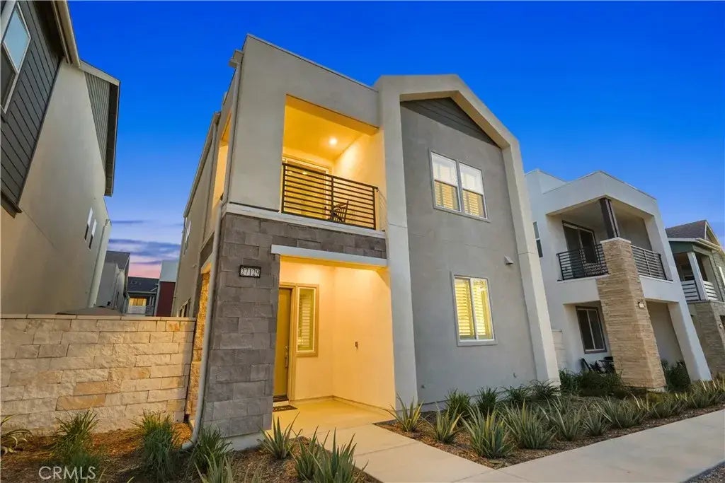 Welcome to this gorgeous detached home in the highly desirable Five Point community prime positioned location with incredible city lights and mountain views. From the moment you arrive, you'll notice the attention to detail, stylish upgrades, and open, airy feel that make this home stand out. Step inside to a bright and spacious layout with soaring ceilings and tons of natural light. The main level features a large great room that's perfect for entertaining, a spacious dining area that leads to a sliding glass door that opens to a serene patioideal for al fresco dining or morning coffee, a convenient powder room, and direct access to the garage. The kitchen is a showstopper with sleek quartz countertops, white shaker cabinets, a designer tile backsplash, an oversized island with a breakfast bar, and top-of-the-line appliances. Upstairs, you'll find three roomy bedrooms all with impressive 11-foot ceilings. The primary suite feels like a luxury retreat, complete with dual vanities, upgraded tile, a huge walk-in closet, and a private balcony where you can enjoy those amazing views. The other two bedrooms share a beautifully upgraded full bath, and there's even a laundry room upstairs for added convenience. This home is packed with upgrades, including plantation shutters, hardwood floors downstairs, designer carpet upstairs, ceiling fans, and smart home features. The attached 2-car garage has an EV charger, overhead storage, built-in cabinets, a workbench, and pegboard everything you need for storage and hobbies. Out back, a private patio with custom pavers and low-maintenance