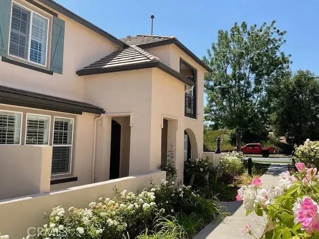 Welcome to this charming and beautifully maintained townhouse located in the highly desirable West Creek Village of Valencia. The inviting kitchen features granite countertops, stainless steel GE appliances, and a full-size refrigerator, perfect for everyday living and entertaining. The open-concept downstairs area includes a comfortable family room, dining area, and a convenient half bathroom, along with a welcoming front porch ideal for relaxing outdoors. Youll also enjoy direct access to a two-car garage with custom built-in storage. Upstairs, youll find three spacious bedrooms and two full bathrooms, along with a full-size GE washer and dryer for added convenience. Each bedroom features a large walk-in closet, and the home showcases newly upgraded wood-style flooring throughout. The West Creek Recreation Center is just a short walk away, offering resort-style amenities including a pool, spa, kids wading pool, BBQ area, and lounge space. The nearby park features a playground, covered picnic tables, BBQs, and a basketball court. Enjoy over 30 miles of scenic paseosbeautifully landscaped pedestrian and bike trails that wind throughout the Valencia community. This home is located within the award-winning School District, featuring West Creek Academy, a highly regarded music and academic magnet school. Its also within walking distance of Rio Norte Junior High and just minutes from Valencia High School, shopping, dining, and freeway access.