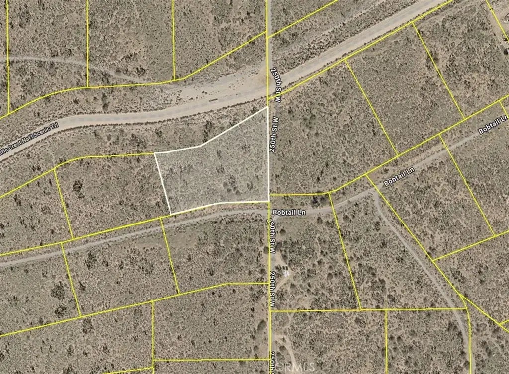 Very unique 2.6-acre land parcel in the highlands of Holiday Valley/Neenach at a great price! This land parcel sits at the northwest corner of 250th St W and Bobtail Lane. There are 360 degree mountain views in this area, and it's within an established community of horse properties and ranches. This property is very close to Gaskell Rd, and also not far from Hwy 138. This is a quiet and scenic area. This may be a great location to camp, go off-roading, install a mobile home, build a house, or start a small farm. It is also directly next to the "Pacific Crest Scenic Trail". This is a great location for someone that enjoys nature and wants to own one of the best corner lots within this area. Don't miss out!