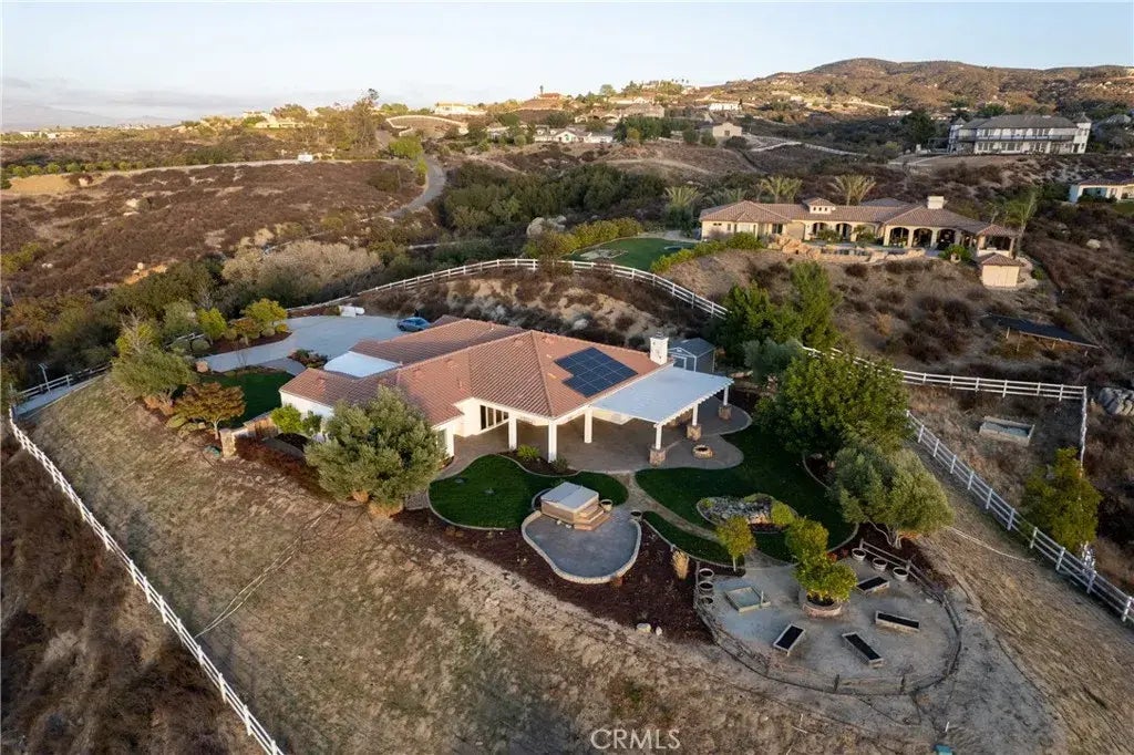 VIEWS, VIEWS, VIEWS! Private gated Temecula home sits on 4.6 acres, offers breathtaking views, a FULLY PAID for SOLAR SYSTEM with 44 panels, and a Tesla charger in the garage, RV PARKING & Located in the prestigious community of Glen Oak Hills in Wine Country. Imagine waking up to panoramic vistas, where hot air balloons drift across the sky, painting a picturesque backdrop. This beautiful property offers more than just stunning scenery. Inside, this spacious home features four bedrooms, three bathrooms, an office with custom-built floating shelves, a full wet bar with lighted shelving, and a three-car garage with separate heating & air, built-in shelving, and a Tesla charger. The open-concept floor plan with hardwood floors seamlessly connects the living, dining, and kitchen areas with granite countertops and stainless steel appliances; perfect for entertaining family and friends. The backyard is an entertainer's dream, featuring a built-in BBQ, jacuzzi, fire pit, aluma wood patio, waterfall feature, outdoor shower, tough shed, veggie garden with five veggie boxes, and RV PARKING! Not to mention the motor court fits 10 cars. Plus, you're just a short drive away from Temecula's renowned wineries, restaurants, and shopping. Don't miss this opportunity to own a piece of paradise.