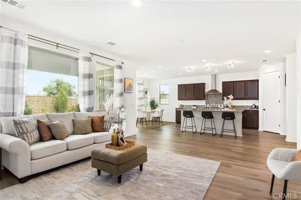 Welcome to this beautifully updated 4-bedroom, 2.5-bathroom two-story home nestled in the highly sought-after Sommers Bend neighborhood of Temecula. Featuring a spacious and seamless open-concept design, the main level offers a bright and airy living room that flows effortlessly into the gourmet kitchencomplete with granite countertops, abundant cabinetry, stainless steel appliances, a sleek hooded gas cooktop, a center island perfect for entertaining, a generous corner pantry, and luxury vinyl plank flooring. Upstairs, you'll find all four bedrooms, including the luxurious primary suitea private retreat with a walk-in closet, dual vanities, a garden tub, and a step-in shower. The conveniently located upstairs laundry room adds everyday ease. Enjoy low-maintenance outdoor living in the beautifully landscaped backyard with high-quality turf and a covered patioideal for relaxing or entertaining year-round. Living in Sommers Bend means access to resort-style amenities, including a stunning clubhouse with a full fitness center, sparkling pools, a full kitchen, bar, and coffee kiosk, as well as BBQ and picnic areas, an event space, and a nearby sports park with athletic fields for every interest. Don't miss your chance to own a piece of one of Temeculas premier communitiesschedule your private tour today!