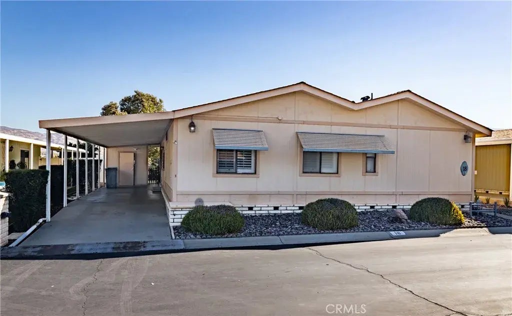 Style & Comfort That Won't Break the Bank. Located in Hemet with breathtaking views of Mount San Jacinto, welcome to Mountain View Parka friendly 55+ community that offers a wonderful place to call home. This rare triple-wide has been lovingly maintained and offers over 1,700 sq. ft. of comfortable living. Inside, youll find custom built-ins including bookcases, a desk, and a hutch, plantation shutters in the bedrooms that add both charm and function. The spacious kitchen features a built-in oven and stove, both in excellent condition, while the living area showcases a fireplacean uncommon and special feature in mobile homes. The home also has a new roof, less than six months old, with a custom skylight, patio cover in the backyard. With no rear neighbors, the backyard feels private and peaceful, perfect for enjoying the clear mountain views every day. Schedule your private showing today and see why this home is truly special.