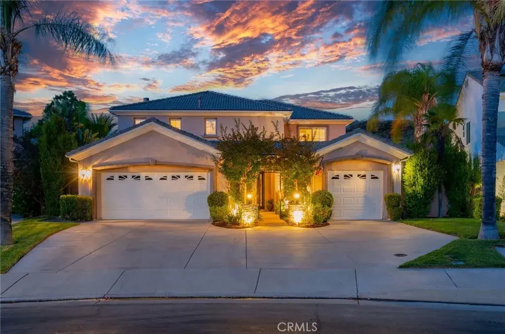PRICE ADJUSTMENT!! Welcome to the Secured Gated Community of Vintage in Redhawk. This BEAUTIFULLY UPGRADED Home is a private oasis on a stunning cul-de-sac at the highest point of the neighborhood! The home showcases a unique floor plan and is ready for the perfect family! Come through the front gate and into the serene courtyard and enjoy the private sitting area between the single (perfect mancave) and double garages. Inside the stunning custom front door is a formal entry that opens to a grand living room. Crown molding is the perfect accent along with plantation shutters throughout. The family room features a surround sound system, stacked stone wall, media niche with shelves and a raised hearth with gas log fireplace. The remodeled kitchen offers beautiful white cabinets with pull out cabinets, stainless steel appliances, granite slab counters, walk in pantry, and opens to the nook area and family room. One bedroom, with a walk-in closet and full bath will be found on the main floor. Up the stunning remolded staircase, you will find the remaining bedrooms and laundry room. The oversized spacious primary suite has a walk-in closet, granite vanity counters, soaking tub and walk in shower with beautiful frameless glass. The jack and jill style secondary bath also features granite vanity counters. The backyard oasis offers a pebble sheen pool and spa with an in-floor cleaning system, fire pit, built-in BBQ and bar area with extensive use of stacked stone. It is the perfect way to entertain your family and friends. Situated in the highly sought-after Temecula Unified School