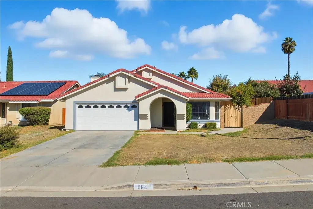 Welcome to 964 Coquina Street, a beautifully refreshed home nestled in a quiet Hemet neighborhood. As you step inside, you're greeted by a formal living room that sets the tone for the home's inviting and spacious layout. This residence features three well-sized bedrooms plus a versatile office or denperfect for remote work, hobbies, or extra living space. The master bedroom includes a private entrance to the backyard, creating a peaceful retreat with easy outdoor access. Flooring throughout the home includes durable laminate in main areas and soft carpet in the bedrooms. While a separate family room with a cozy fireplace adds warmth and charm. The interior has been freshly painted, and stylish shutters accent the main living spaces. The open front yard offers a blank canvas for your landscaping vision. Step outside to enjoy a covered back patio perfect for relaxing or entertaining. The backyard is adorned with fruit trees and designed for low-maintenance living. The exterior has also been recently painted, enhancing curb appeal and giving the home a clean, modern look. Conveniently located near Elementary and Middle schools, shopping centers, and with easy access to Domenigoni Parkway, this move-in-ready home offers comfort, flexibility, and a prime location. Come experience all it has to offer.