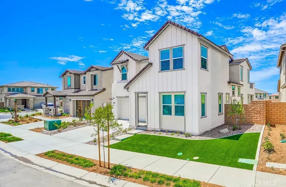 This stunning 2,614 sq. ft. home is perfectly situated on a cul-de-sac in the highly desirable Sommers Bend community. Offering 4 bedrooms, 3.5 baths, and a spacious 3-car garage, this home is thoughtfully designed with premium upgrades. The open floor plan is highlighted by a 60 linear electric fireplace with multi-color flames, designer-engineered wood flooring, and custom chandeliers. The gourmet kitchen features granite countertops, soft-close cabinetry, and a high-end Caf appliance package, including a gas double oven with convection and an Energy Star smart French door refrigerator with a hot water dispenser. The primary suite offers a serene retreat with a private balcony featuring wrought iron railings and breathtaking sunset views, while the spa-like master bath includes a soaking tub, a tiled shower, and elegant finishes. The outdoor space is just as impressive, featuring an extended covered patio with a ceiling fan, beautifully landscaped front and back yards with artificial grass, fruit trees, custom lighting, and a 30-foot garden box. Additional upgrades include iron balusters in satin black, framed mirrors, plantation shutters, contemporary brushed nickel plumbing fixtures, Cat 6 data outlets, and ceiling fans throughout. Beyond the home, Sommers Bend offers resort-style amenities to enhance your lifestyle. Enjoy basketball courts, baseball and soccer fields, BBQ areas, a state-of-the-art pool complex with a spa and kiddie pool, clubhouses, a fully equipped fitness center, and playgrounds. This home is truly the complete packagea perfect blend of luxury, comfo