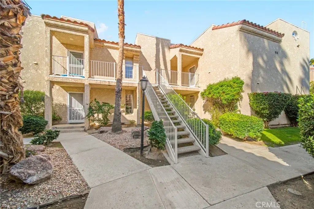 PRICE ADJUSTMENT! This renovated first floor 2BR/2BA unit in the gated Esprit community offers modernization in a prime South Palm Springs location. Features include new tile flooring, fresh paint, and designer lighting throughout the entire home. The main bedroom includes a large walk-in closet and a fully renovated bathroom with a new vanity, sink, and fixtures. The kitchen is outfitted with stainless steel appliances and a refrigerator with in-door filtered water/ice. The private patio has mountain and sunset views, and is equipped with a roll-down shade and lighted fan. Amenities: Steps away from 1 of 2 pools, 3 hot tubs, and lighted tennis/pickleball courts. Prime Access: Easy walk (1 block) to Trader Joes and Starbucks; minutes from the Goat Trail and the new CV Link bike path. This all-age boutique community is impeccably managed, has extremely low taxes and is ready for immediate enjoyment!