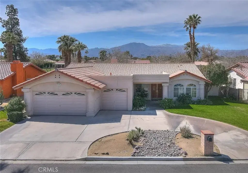 ***PRICE REDUCED***SELLER MOTIVATED***Beautiful single story custom 2360 s.ft., 3 bedroom, 2&1/2 bath home on a 10,000s.ft. lot in highly desired Indian Palms Country Club. A circular drive and 3 car garage add to the homes great curb appeal. The double door entry leads into an open concept living room with a walk behind wet bar. Entering, there is a designated dining area to your left and a gorgeous, stacked stone, 2 sided fireplace with custom lighted cutouts as you walk towards the family room. There are ceiling fans and berber carpet throughout most of the home and a central vacuum system. The well appointed kitchen has ample cabinets and counter space, built-in double ovens, dishwasher and center island with cooktop. Off the kitchen is a utility/laundry room with sink. The spacious primary bedroom has a full ensuite bath with a dual sink vanity and large walk-in closet with mirrored doors. Separate shower and soaking tub and A/C unit. The remaining 2 oversized bedrooms also boast mirrored wardrobe doors and ceiling fans and share a full bath with a tub/shower combo off the hallway. 3 sliding doors offer access to the backyard where you will find a built-in pool & spa, a lighted, covered patio with fan, barbecue, planters, grass area, flag pole and views of the golf course and Santa Rosa mountains. The 1/2 bath can be accessed directly from the pool area. Homeowners enjoy low HOA dues with pay as you play golf, 24 hour gate guarded security, a restaurant and hotel. A social membership is available which includes the Lifestyle Fitness Center, tennis and pickleball courts