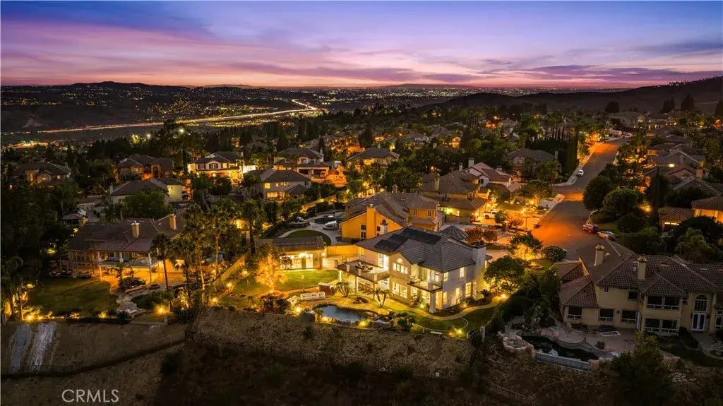 Welcome to The Breathtaking Panoramic Views Property in Yorba Linda! Must stop to see and stay mins! Perched high on a cul-de-sac, this one-of-a-kind architectural gem offers unparalleled privacy, luxury, and sweeping 180 mountain views with no neighbors in sight. Nestled at the top of the hill in the prestigious Lomas De Yorba Estates, this home features one of the communitys most sought-after floor plans with soaring two-story ceilings, expansive open spaces, and walls of windows framing mesmerizing scenery. This stunning estate offers 5 bedrooms, 6 bathrooms, and has been fully renovated inside and out with new paint, hardwood flooring, and modern finishes. The chefs kitchen showcases white cabinetry, granite countertops, Sub-Zero built-in refrigerator/freezer, stainless steel appliances, and a spacious center prep island all completely open to the inviting family room with fireplace and picture-perfect views. Additional highlights on the main level include: A private executive office with high ceilings and custom white lacquer built-ins A stylish powder room A convenient downstairs en-suite bedroom A full laundry room Dual staircases lead upstairs to the luxurious oversized primary suite featuring a cozy retreat, fireplace, and private balcony. The spa-like primary bathroom includes a sunken jetted tub, marble flooring, dual vanities, a walk-in shower, and a generous walk-in closet. Three additional bedrooms (one en-suite), two full bathrooms, and a loft with access to a large viewing deck complete the second floor. The deck also provides direct access to the backyard.