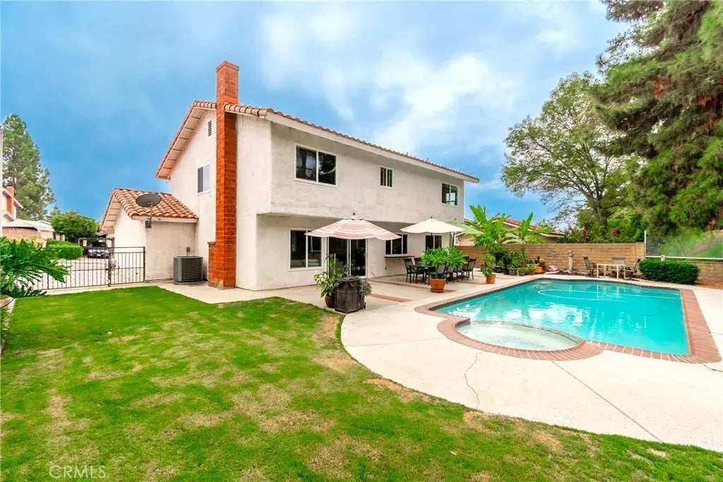 Welcome to 19873 Calle Granada, Walnut a spacious 4-bedroom, 3-bathroom home offering approximately 2,015 sq ft of comfortable living space, ideally set on a 9,200+ sq ft lot in a highly desirable neighborhood. This thoughtfully designed two-story residence sits at the end of a quiet cul-de-sac, providing privacy and a peaceful setting. The bright living room boasts high ceilings, large windows with elegant shutters, and an inviting dining area. The functional kitchen, appointed with cherry wood cabinets, overlooks the expansive backyard, while the cozy family room is perfect for gatherings with seamless access to the outdoor space. Upstairs, the roomy primary suite features soaring ceilings, two ample closets, a private full bathroom, and beautiful views, creating the perfect retreat. Additional highlights include double pane windows throughout, updated central heating and air, an attached 2-car garage, a long driveway with RV parking on the side, and a newer roof. The generously sized backyard showcases mature landscaping and a sparkling pool that has been recently re-serviced, offering the perfect setting for entertaining or relaxing. With its spacious lot, the property also provides J/ADU potential, ideal for multi-generational living or additional rental income. Plus, its south-facing orientation helps keep the interior naturally cool and comfortable throughout the year. Conveniently located near top-rated Walnut schools, parks, shopping, and freeway access, this home blends everyday functionality with long-term potential. Dont miss the opportunity to own this beautif